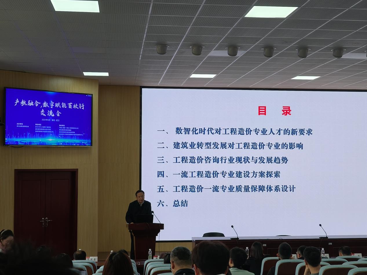 会上,公司特聘教授方俊(高校工管和造价教材委委员、教育部高等公司工程管理和工程造价专指分委委员、住建部高等教育工程管理专业评估委员会委员),做了《数智化时代一流工程造价专业建设探索》的报告。