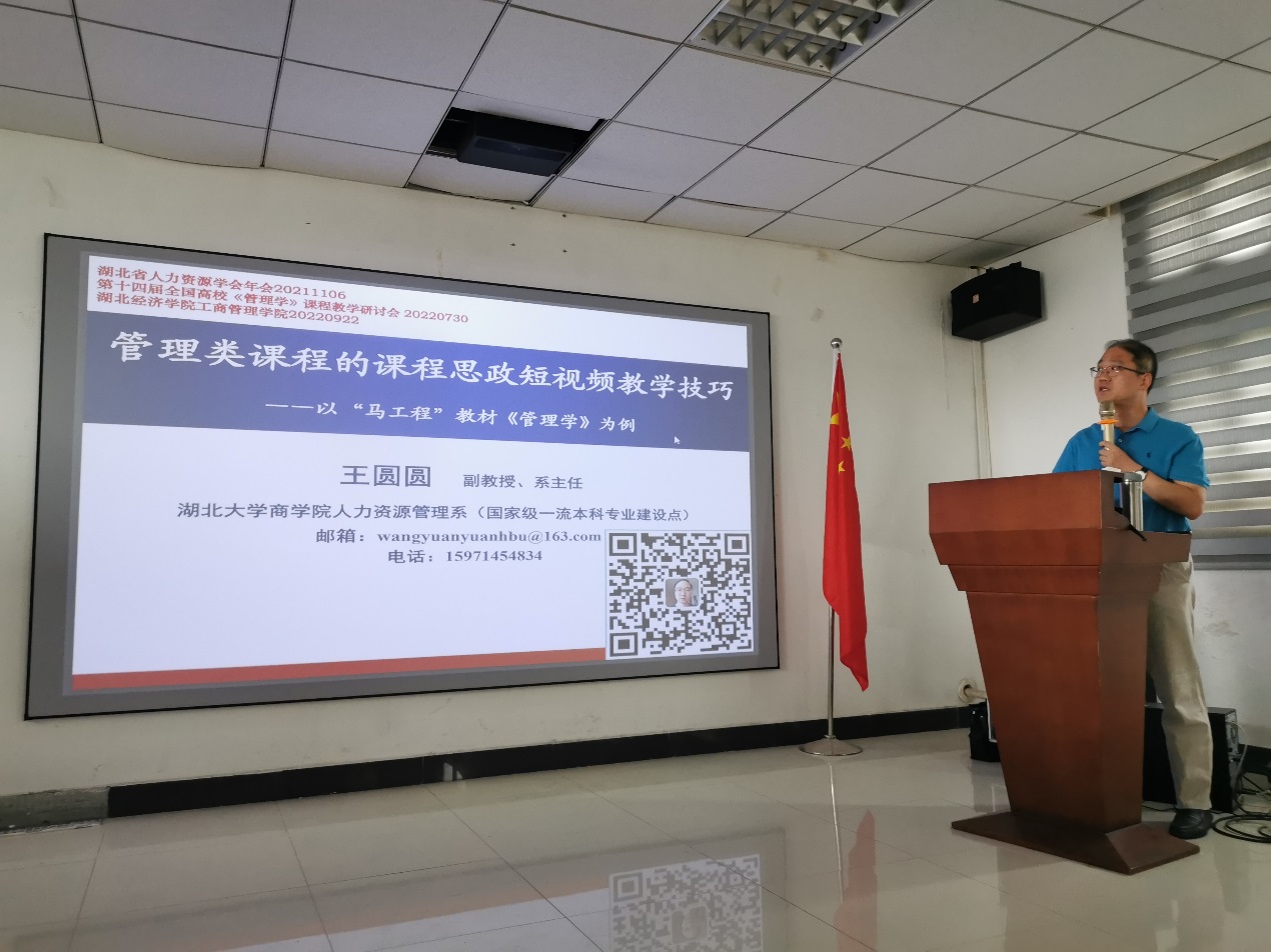为了进一步推进公司课程思政建设,提升教师课程思政能力,923日下午,应公司邀请,湖北大学人力资源系主任,硕士生导师王圆圆副教授莅临公司做了题为《管理类课程的课程思政短视频教学技巧》的学术报告。报告由叶敏副经理主持,全院教师参加了此次报告会。