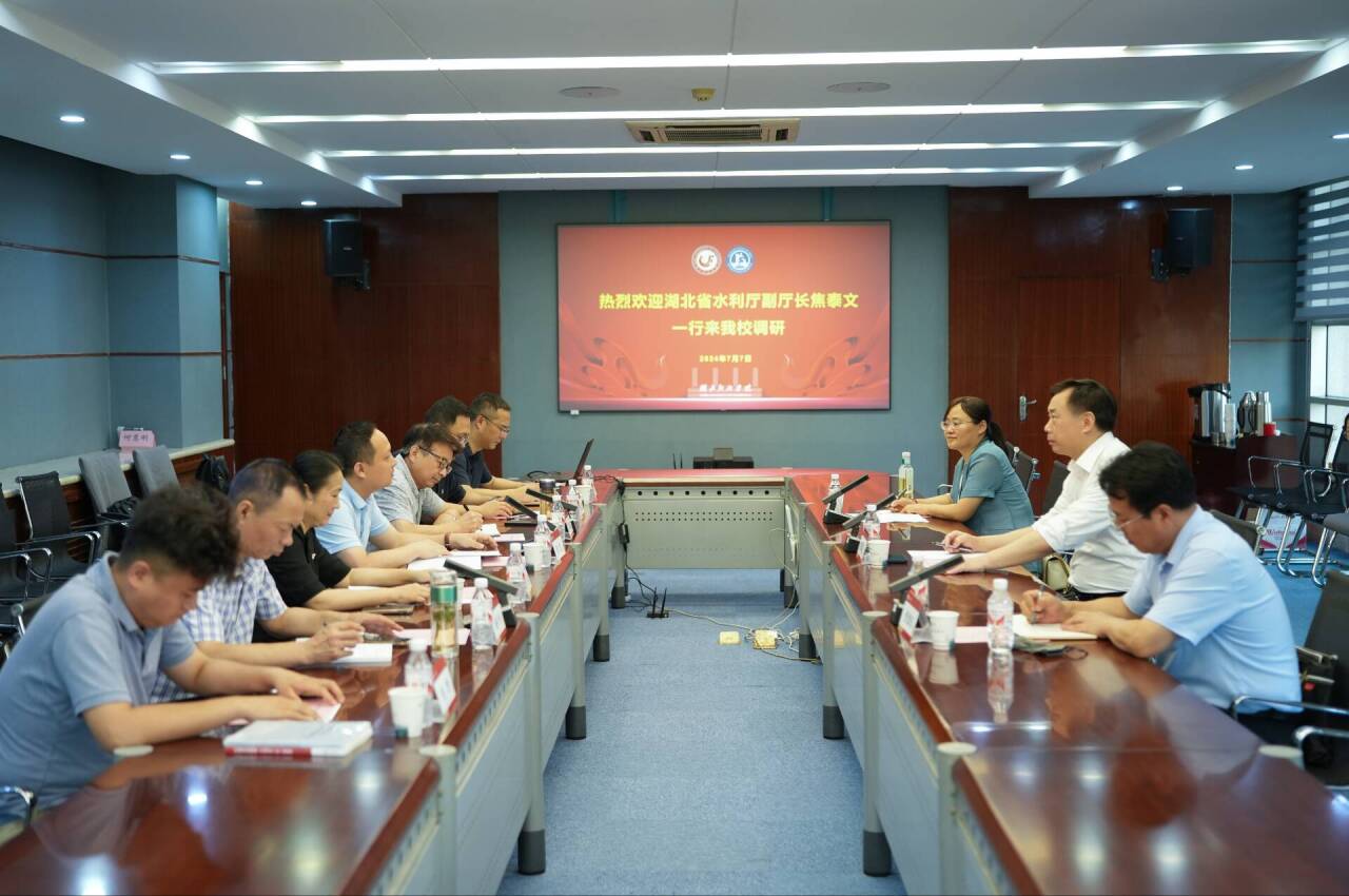 (通讯员 陈金波 审核人:冷凯君)7月7日,湖北省水利厅副厅长来校调研公司科研平台与水利厅合作情况,湖北省水利厅移民处处长曹德权、湖泊处处长刘英萍陪同调研。副董事长付宏教授出席调研座谈会,科研处处长刘国武教授主持。经理冷凯君教授、水库移民工程咨询中心主任陈金波教授、湖北水事研究中心主任邱秋教授、后勤集团总经理杨守平,长江经济带发展战略研究院副经理田野共同参加此次调研活动。