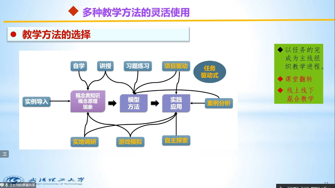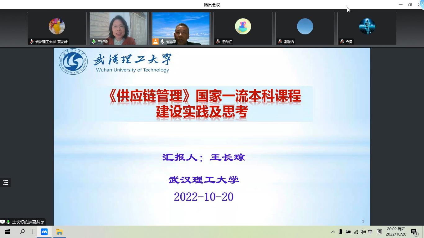 2022年10月20日晚8:00-9:30,湖北名师、首批国家级一流本科课程《供应链管理》课程负责人、湖北省高校教学成果一等奖获得者、物流管理专业虚拟教研室成员,武汉理工大学王长琼教授,为教研室成员作了“供应链管理”课程示范教学,并进行研讨交流。本次活动是“基于央地融合的物流管理专业虚拟教研室”的系列教研活动之一,由虚拟教研室负责人、教育部物流管理与工程类专业教指委副主任委员、华中科技大学刘志学教授主持,公司和华中科技大学、上海海事大学、武汉理工大学、南京信息工程大学、重庆工商大学、云南财经大学等虚拟教研室共同建设高校,以及共计100多名师生参加了此次会议。