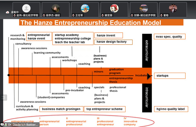 2022年11月20日,荷兰汉斯应用科学大学Dr.Diederich Bakker教授通过线上会议为公司分享了创新创业教育经验。betway西汉姆联官方网站冷凯君副经理主持会议,工商管理系、法商公司和全校部分教师参加了本次会议。