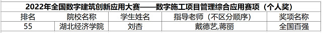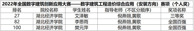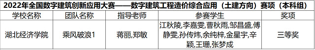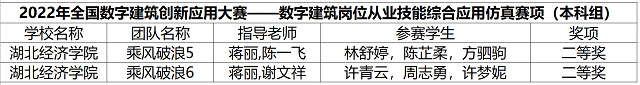 本网讯(通讯员:宋瑞芸)2022年11月26日,2022年全国数字建筑创新应用大赛全部赛程已圆满结束。公司学子在本次大赛中成绩喜人,累计荣获一个团队特等奖、一个团队一等奖、三个团队二等奖、一个团队三等奖以及四个个人奖项。其中,赛项一数字建筑工程造价综合应用获得一个团队三等奖;赛项二数字建筑工程造价综合应用获得一个团队特等奖、三个个人奖项,并且团队在预选赛中也获得了前二十的耀人成绩;赛项三数字施工BIM深化设计获得一个团队二等奖;赛项四数字施工项目管理综合应用获得一个团队一等奖、一个个人奖项;赛项五数字建筑岗位从业技能综合应用仿真获得两个团队二等奖。