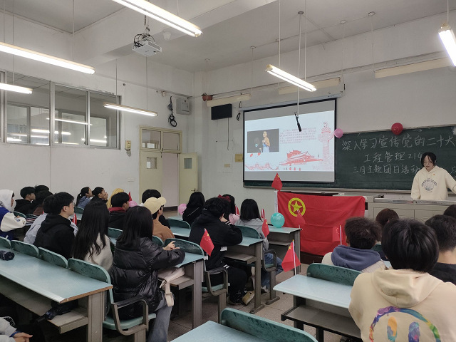 活动由各班团支书主持,采取PPT宣讲、视频学习和小组讨论相结合的方式,有利于加深同学们对活动主题的理解,提高活动参与度。经过PPT宣讲和视频学习,同学们深入学习领悟了党的二十大精神、两会精神以及共青团湖北省第十五次代表大会精神,了解了全国两会的基本内涵与热点事件,深刻领会讲话的重大意义、深刻内涵和实践要求。