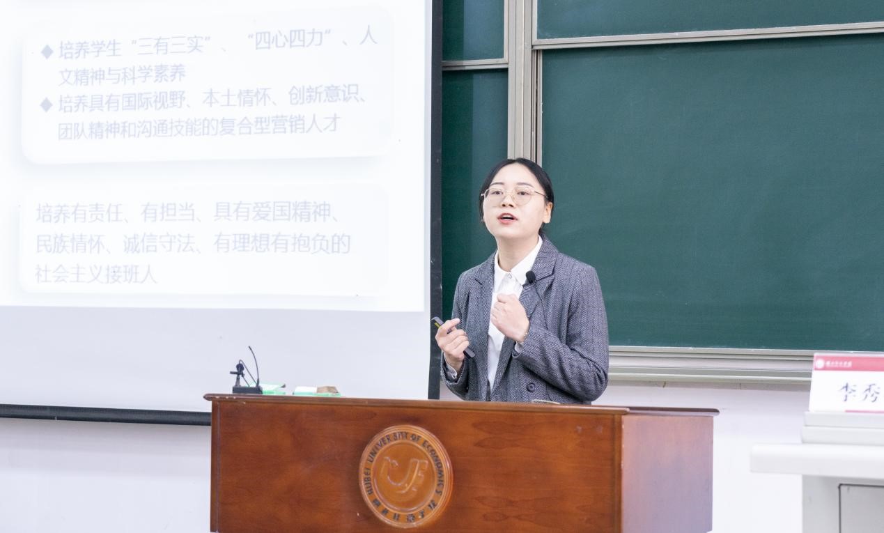 betway西汉姆联官方网站李秀梅老师经过初赛选拔、复赛评分,顺利进入决赛,作为第二组第三位出场教师。李秀梅老师讲授的主题是产品品牌策略:她在说课环节介绍了培养目标:即培养员工成为具有“三有三实”、“四心四力”、人文精神与科学素养、国际视野、本土情怀、创新意识、 团队精神和沟通技能的复合型营销人才,以及课程思政元素的融入体系。在讲课环节,李秀梅老师充分引导员工深入理解 “中国品牌日” 以及“中国品牌”的重要战略作用,在讲课过程中深入挖掘思政元素。李老师通过华为、农夫山泉、花西子等案例激发员工社会责任感和爱国情怀。融合案例教学法、自主探究法、启发式教学法、小组讨论法等多种教学方式启发员工了解品牌的概念及相关策略,将思想政治教育元素融入教学展示内容中,实现思政元素与专业教学内容有机融合,最后李老师以93.43分的成绩荣获本次课程思政授课大赛的第一名。