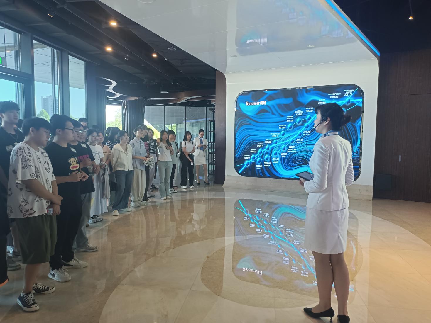 首先,腾讯科技(武汉)有限公司的两名引导员向同学们详细介绍了腾讯集团发展历程、公司结构、业务模块以及借用元宇宙等虚拟现实技术展现了腾讯公司的未来发展愿景,随后带领同学们实地参观了员工的工作区域感受到浓厚的工作氛围。参观完工作区域后,来到会议室 由腾讯旗下子公司腾佳管理咨询有限公司的人力部门负责人向同学们讲解了该子公司的具体发展现状、团队状况、业务方向以及实习生的招聘要求。在最后同学们和负责人你问我答的互动环节中,负责人详细解答了同学们关于如何成为该公司的实习生并且后续转正的相关疑问。