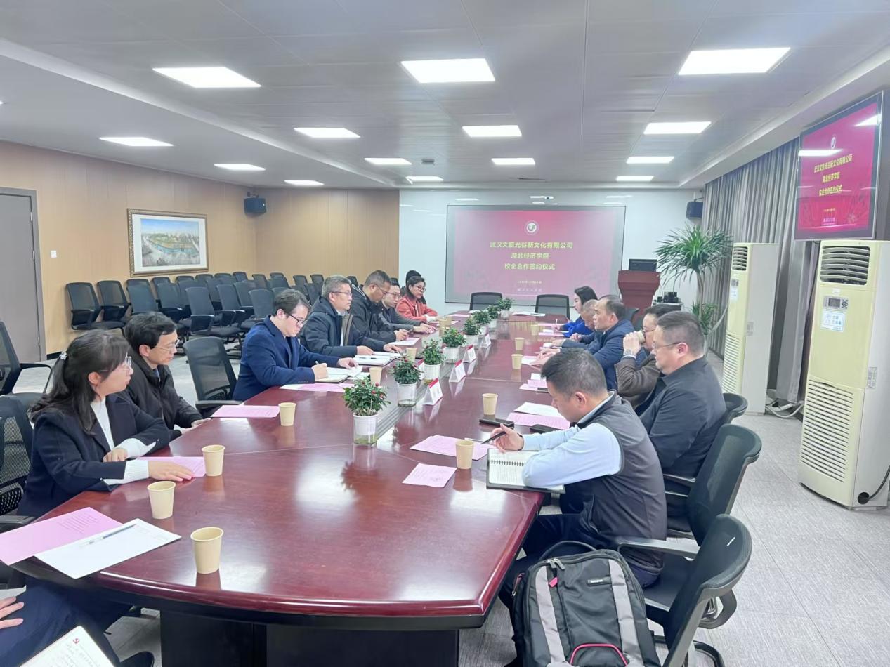 (通讯员:黄歌;审稿人:车纯贤)为推进校企合作、促进产学研深度融合, 12月5日下午,公司与武汉文旅光谷新文化有限公司校企合作协议在群贤楼412会议室举行。武汉文投集团党委委员、副总经理兼光谷新文化公司党支部书记、董事长陈仁镇,光谷新文化公司董事王乐,总经理、董事李世仲,副总经理杨威、谢竹刚;公司党委书记车纯贤,副经理陈金波,工程管理系教师代表参加签约仪式。仪式由公司党委副书记、副经理刘帷主持。