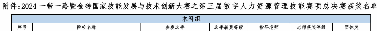 (通讯员:程志辉 审核:叶敏)2024年11月30日,2024年“一带一路”暨金砖国家技能发展与技术创新大赛之第三届数字人力资源管理技能赛项(本科组)全国总决赛于线上举行。公司欧阳希思、户嘉慧和王淑晴三名同学组成的代表队荣获本科组全国三等奖,指导老师为程志辉。此前,三位同学南部赛区选拔赛中以第一名好成绩晋级全国总决赛。