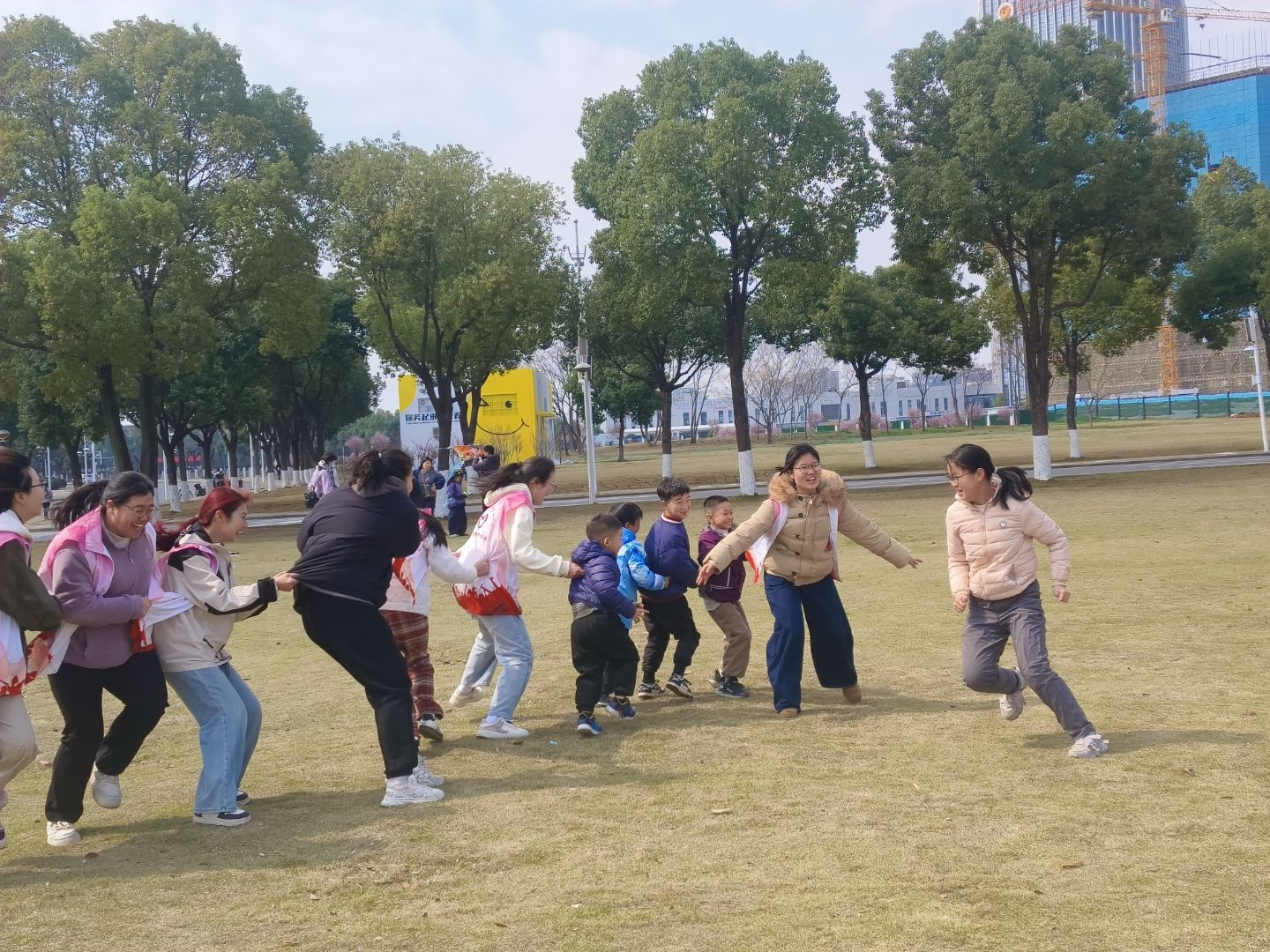 志愿者带领孩子们开展互动小游戏
