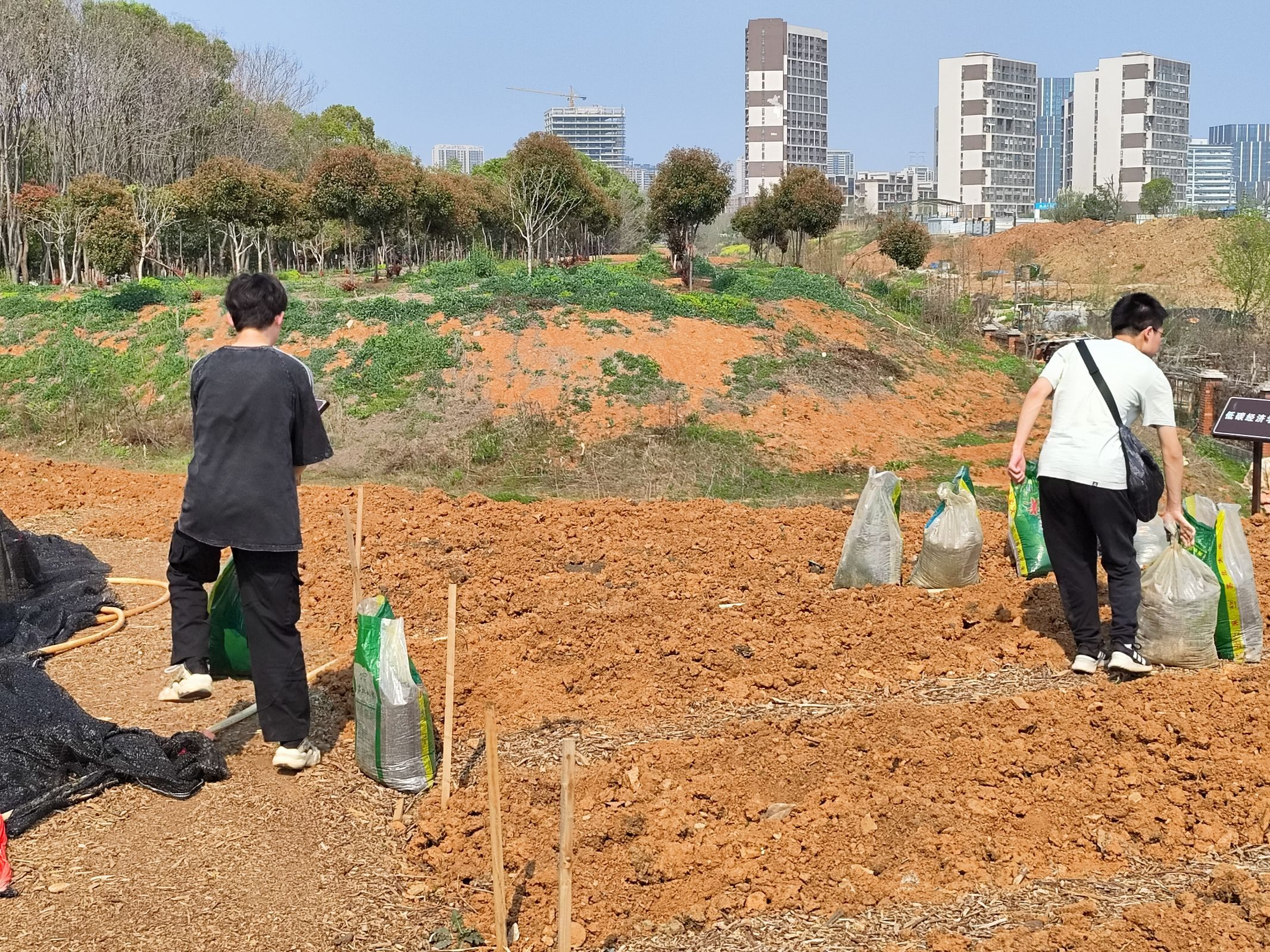 活动现场气氛热烈,公司学子并肩作战,他们手握锄头、铁锹,翻土、清理石子,一派生机勃勃的劳动景象。在大家的共同努力下,一片片作物在温暖的阳光下茁壮成长。