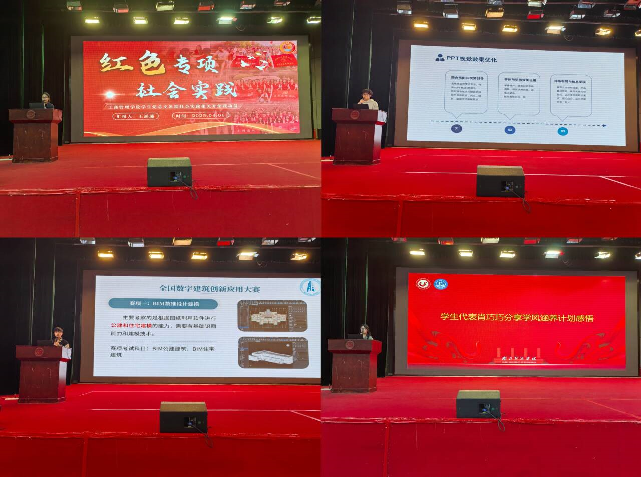 在暑期社会实践经验分享环节,辅导员颜诗珑细致地介绍了暑期社会实践的主题选取、组织形式、注意事项等,鼓励同学们利用暑期走出校园,为社会发展贡献自己的力量。“萤火虫”团队负责人付林婧和“先锋团队”负责人王涵璐先后介绍了从选题策划到成果落地的全过程,为同学们提供了丰富的实践思路。