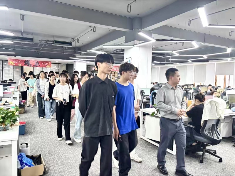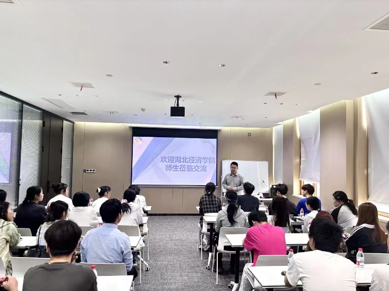 叶敏副经理与员工们抵达公司后,受到了公司运营总经理徐兵和人力部门经理何格的热情接待。在徐经理的引导下,师生们参观了公司的办公环境、休息区等场所,深入了解了公司的业务流程和企业文化。随后徐经理详细介绍了公司在跨境电商领域的成功经验及面临的挑战,并分享了公司未来的发展规划。