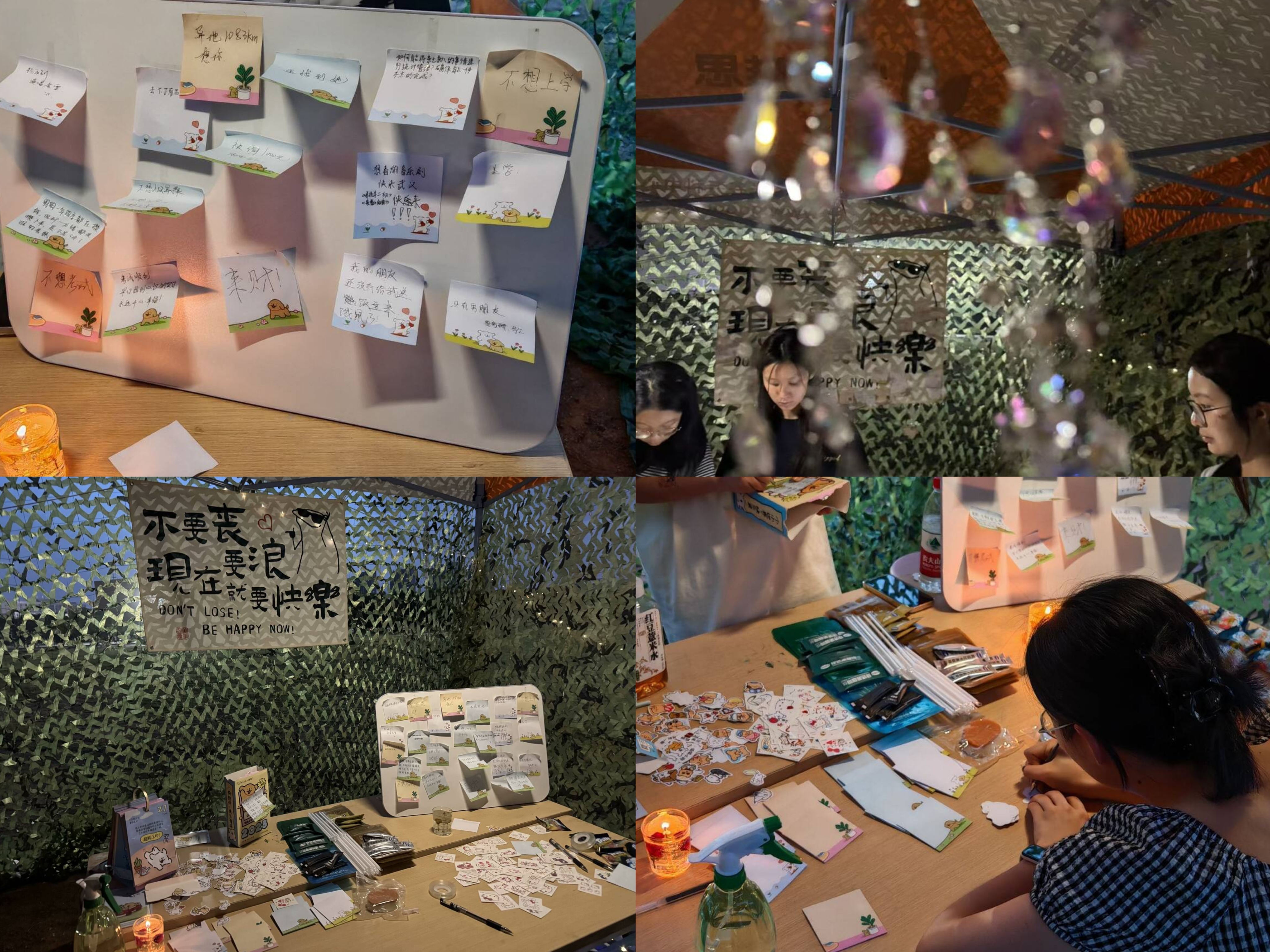 活动精心设置两大特色区域,成为同学们释放压力、获取心灵力量的好去处。“情绪树洞”区域通过匿名书信实现跨时空心灵对话,在这里,同学们可以将心中的烦恼、困惑尽情倾诉于纸上,投入树洞;也可以抽取他人信件,化身“心灵信使”,用温暖的文字给予安慰与鼓励。“解忧杂货铺”区域通过香薰蜡烛、心情日历等治愈物品,搭配适宜心理知识讲解,传授实用情绪管理技巧,让大家在轻松愉悦的氛围中收获心理调适的“锦囊妙计”。