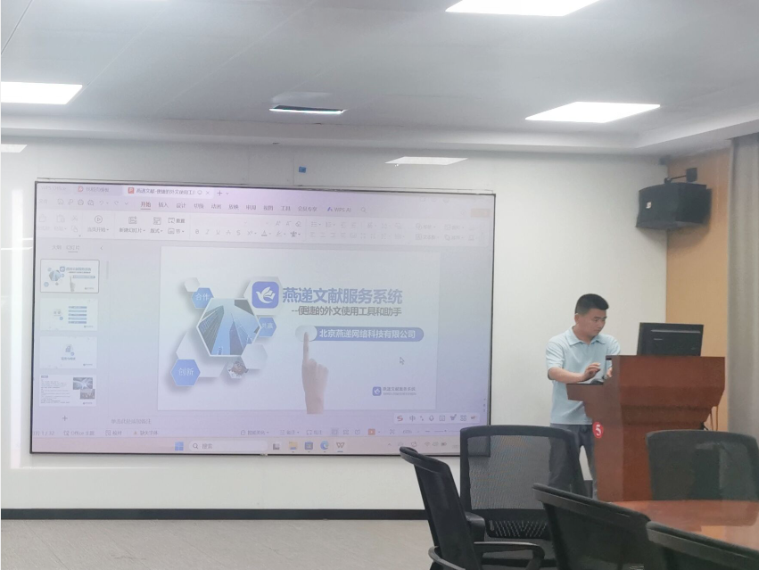 第二部分则围绕英文文献展开。工作人员介绍了燕递文献服务系统。该系统是一个综合文献网络服务平台,广泛收录了海外电子书、期刊、预印本论文、视频、指南、专业资讯等多种类型的专业信息,为外文资源使用者提供了一站式的系统、全面、准确、快速的海外文献资料信息服务。燕递文献服务系统具有诸多优势,如解决图书馆资金不足、盘活存量、提升服务水平等难题,同时为用户提供了个性化订阅推送、快速获取文献全文、在线即时英汉对照翻译等便捷服务,极大地提升了用户获取和利用外文文献的效率。