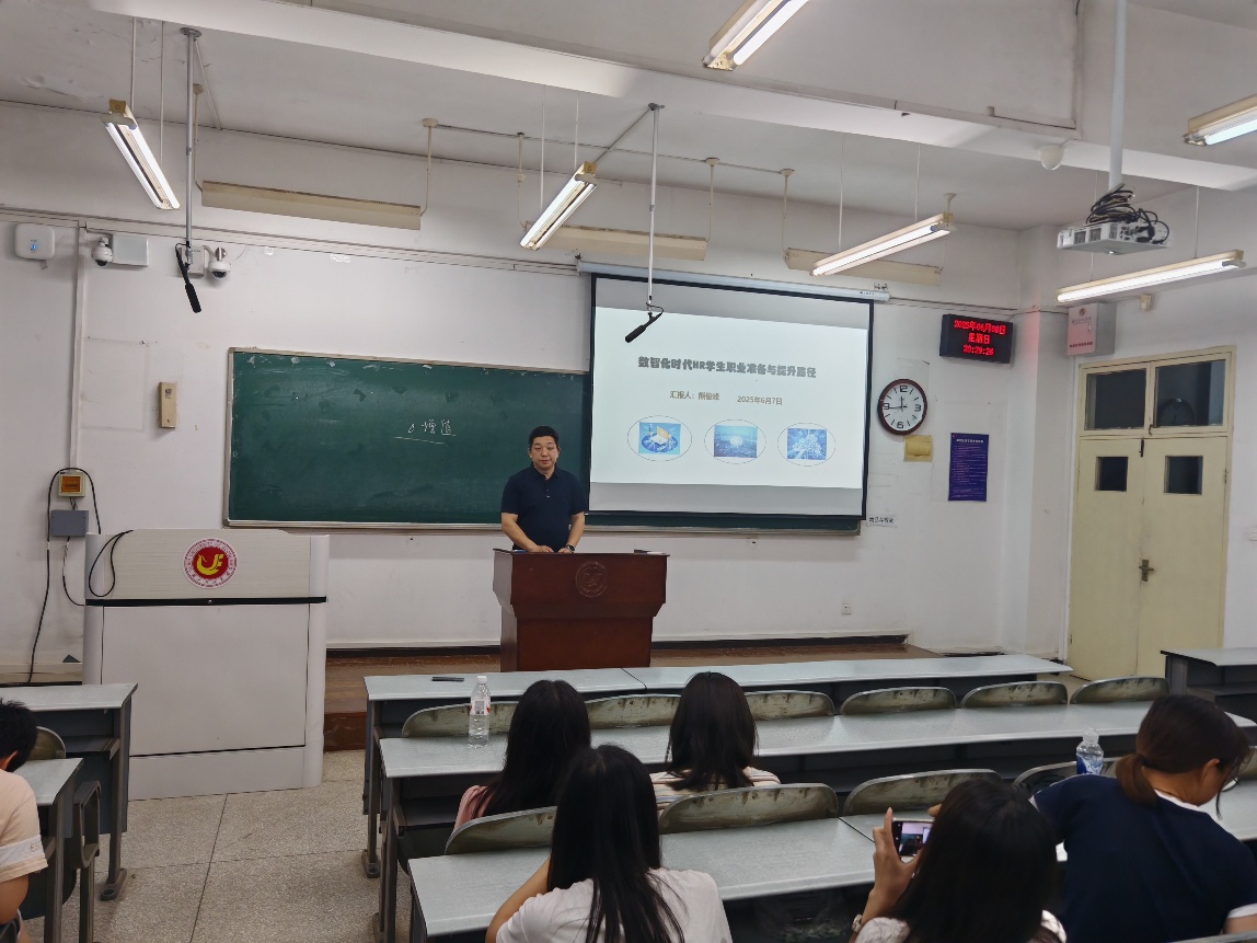 本网讯(通讯员:陈羽彤 审核:叶敏)2025年6月8日,以“数智化时代HR员工职业准备与竞争力提升路径”为主题的专题讲座在教1-212教室圆满落幕。作为2024级人力资源管理专业认知教育系列活动的核心环节,本次讲座由人力资源系系主任熊俊峰老师担任主讲。