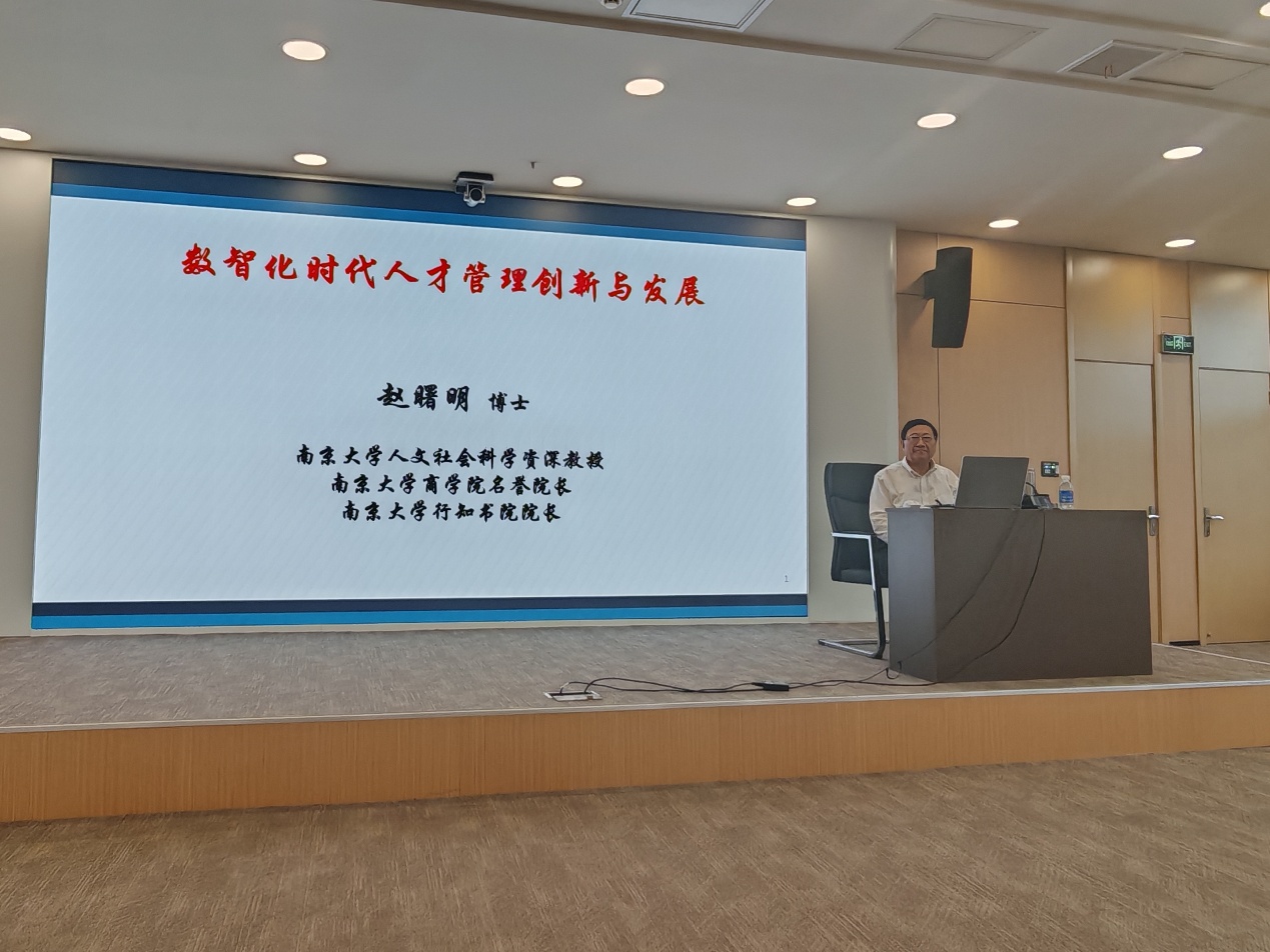 本网讯(通讯员:唐双双  审核:钱玲)622日下午,南京大学人文社会科学资深教授、教育部工商管理类学科专业教育指导委员会副主任赵曙明教授应邀莅临公司,在老员工活动中心6号报告厅为公司师生带来了一场主题为“数智化时代人才人才发展创新与管理”高水平学术讲座。本次活动由副经理钱玲主持,全院160余名师生参加。