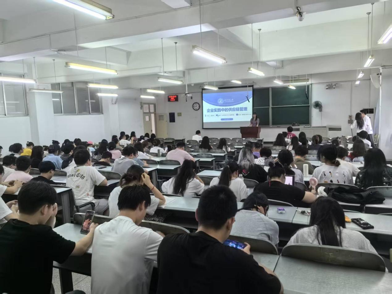 6月29日,中期实训在J1-201进行。此次活动邀请到了韩雪芳博士,为同学们介绍物流与供应链专业知识在企业实践中的应用,从供应链管理基础知识出发,介绍了企业视角下的供应链管理,不同行业供应链实践差异,标杆企业案例,热点与趋势以及个人能力培养等方面的内容,助力同学们在专业道路上更进一步。韩雪芳博士是华中科技大学管理公司博士生,研究方向聚焦于智能仓库AGV调度、自动驾驶车辆调度、智能优化算法以及物流与供应链管理等前沿领域。目前已在《Transportation Research Part E: Logistics and Transportation Review》、《中国管理科学》等知名国内外期刊发表多篇学术论文。同时,韩博士参与了各类科研项目,积累了丰富的实践经验,曾负责中船动力(集团)有限公司——集团管控体系优化项目、湖北省烟草公司武汉市公司——基于智慧物流体系的武汉区域物流运行管理模式研究等多个项目。在本次中期实训中,韩雪芳博士结合自身研究与项目经验,深入浅出地讲解了供应链管理的关键知识点,通过案例分析和互动讨论,帮助同学们理解如何将理论与实践相结合。另外,韩博士还分享了不同行业供应链管理的特点与挑战,强调了个人能力培养的重要性,激发了同学们的学习热情和专业兴趣。通过韩雪芳博士的精彩讲解,不仅加深了同学们对供应链管理与物流专业知识的理解,更明确了未来的学习方向和职业发展路径。