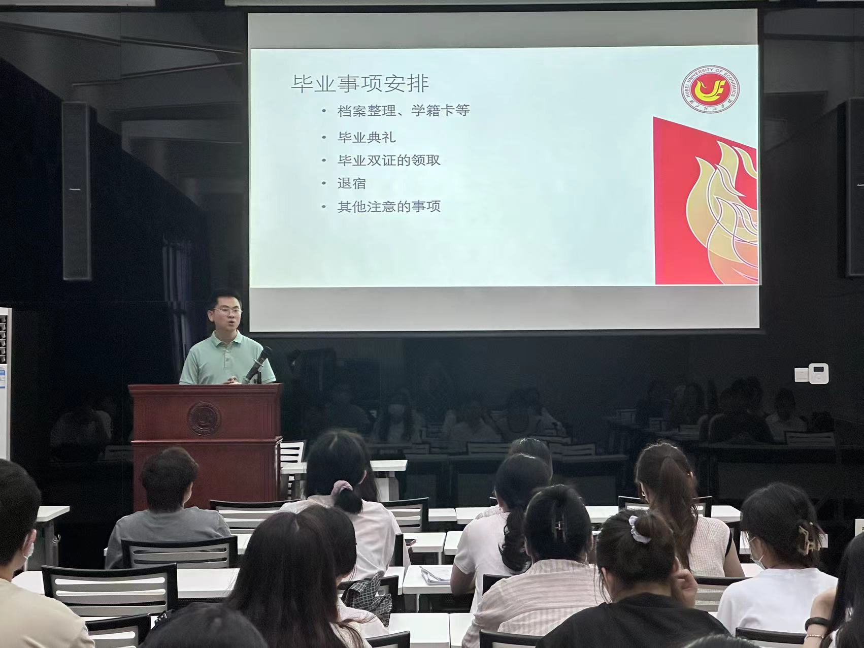 座谈会上,祝老师从毕业生档案整理与学籍卡等、毕业典礼、毕业双证的领取、退宿以及其他注意的事项展开介绍,毕业生档案整理需毕业生自己按规定进行整理如党员材料、学籍卡等手续;于6月初举行会计硕士毕业生毕业典礼,公司诚邀毕业生及其亲朋好友参加典礼仪式;学位证和毕业证于6月下旬进行发放,应按时领取;毕业生退宿要填写相应宿舍清单,整理床铺,清理垃圾等。