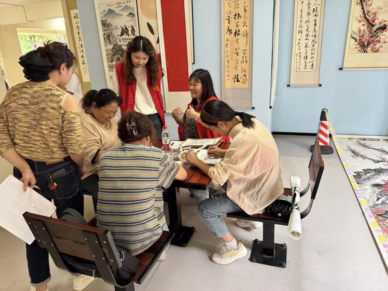 此次活动中,社区设置创作区,书法爱好者挥毫展示技艺;同时开设亲子书画体验活动,社区提供颜料,画具,在志愿者的帮助下共同体验绘画活动,让参与活动的每一位居民都能感受到书画艺术的魅力。公司志愿者在活动中积极协助社区帮助居民参与书画展,展现青年志愿者的担当与暖心。