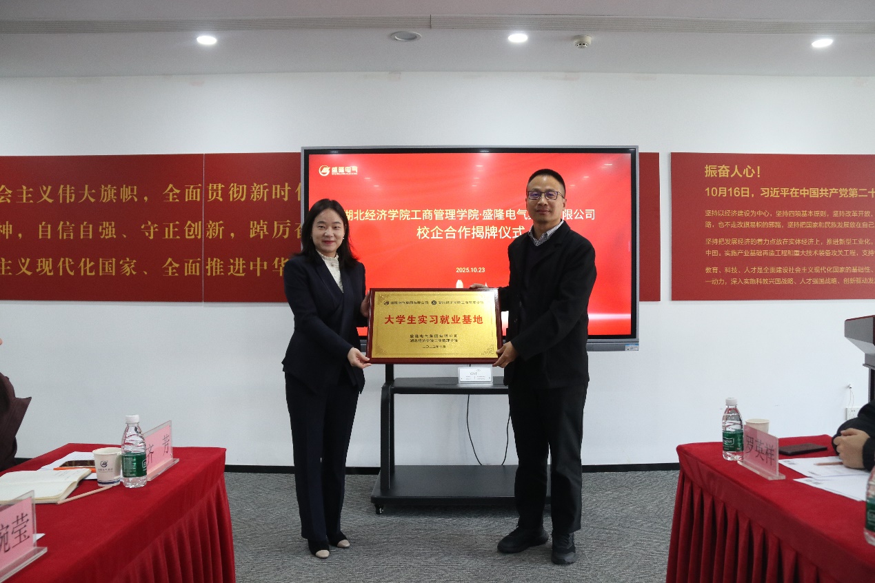 随后,校企座谈暨挂牌仪式正式举行。盛隆电气集团创业十七公司总裁叶柳麟对公司师生的到访表示热烈欢迎,详细介绍了盛隆电气的发展历程、业务布局及核心管理模式。她强调,企业高度重视与高校的合作,期待以此次共建实习基地为契机,进一步推动人才共育与资源共享,实现校企协同发展。