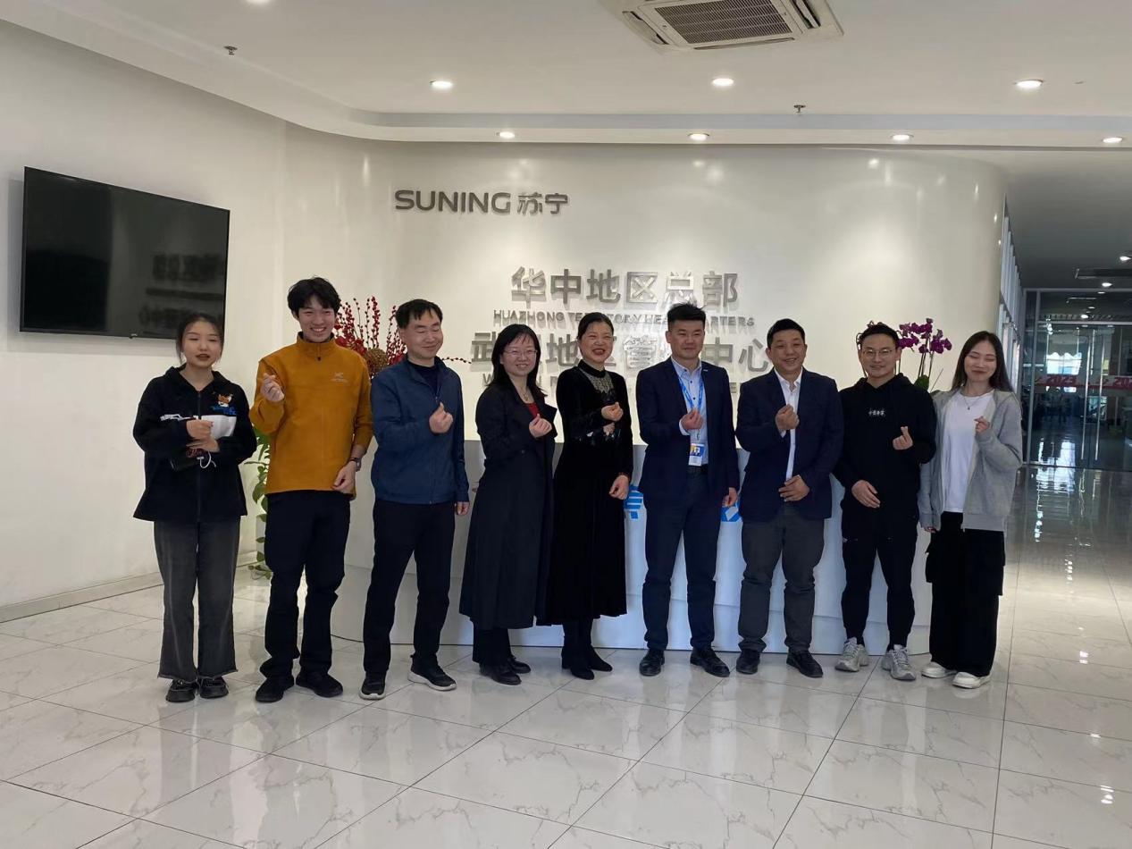 本网讯(通讯员:郑心怡)为进一步促进毕业生参与毕业实习的积极性,检查毕业生在实习单位的表现,提高毕业生综合素质。2023年3月14日公司叶敏副经理、人力系主任熊俊峰、物流系主任汪利虹、工商系老师刘钢、营销系老师李秀梅、辅导员贺楷欣、教学秘书郑心怡共同前往营销1941班李玉琳同学所在实习公司——苏宁易购销售有限公司进行调研。