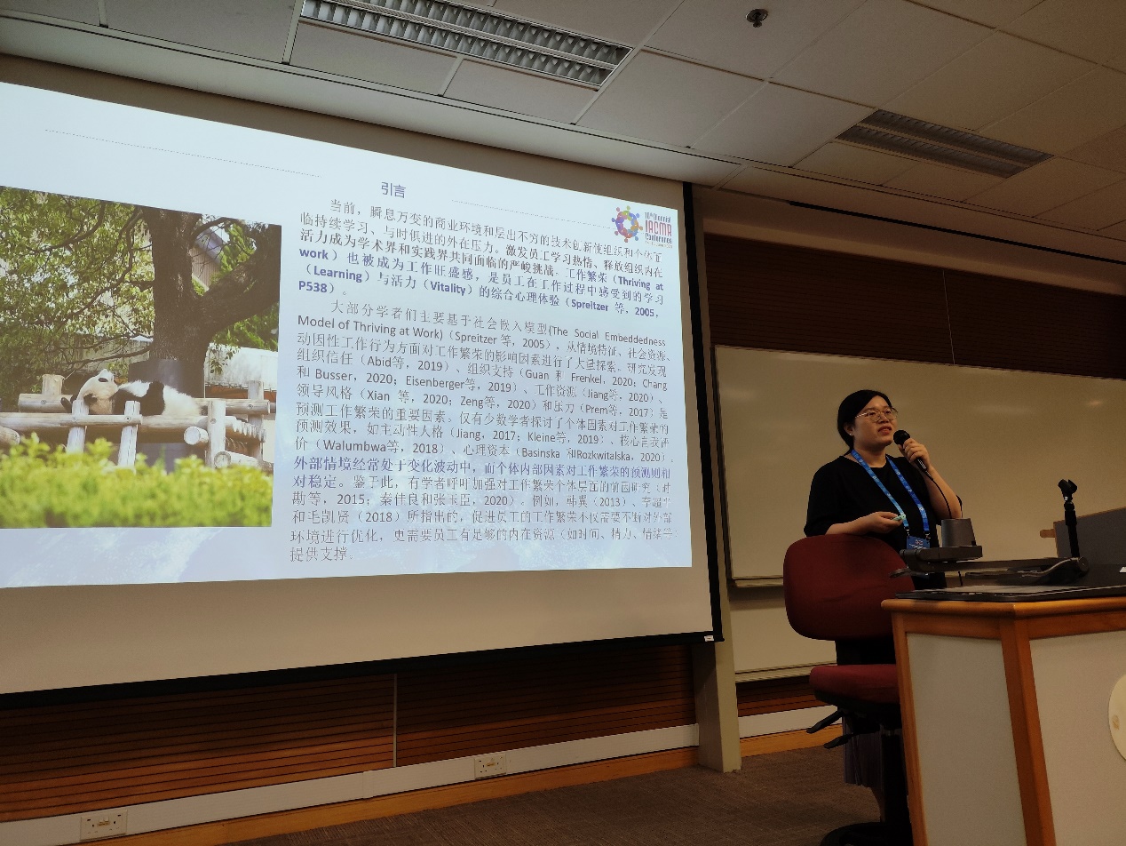 公司人力资源管理系青年教师邵丹萍、王烁砾参加此次会议。邵丹萍老师做了题为《内下功夫,身心焕然:正念对工作繁荣的影响》的主题汇报。通过此次会议,公司教师对当前组织行为和人力资源管理管理领域的研究前沿有了进一步的了解,为完善今后的学术研究奠定了良好基础。