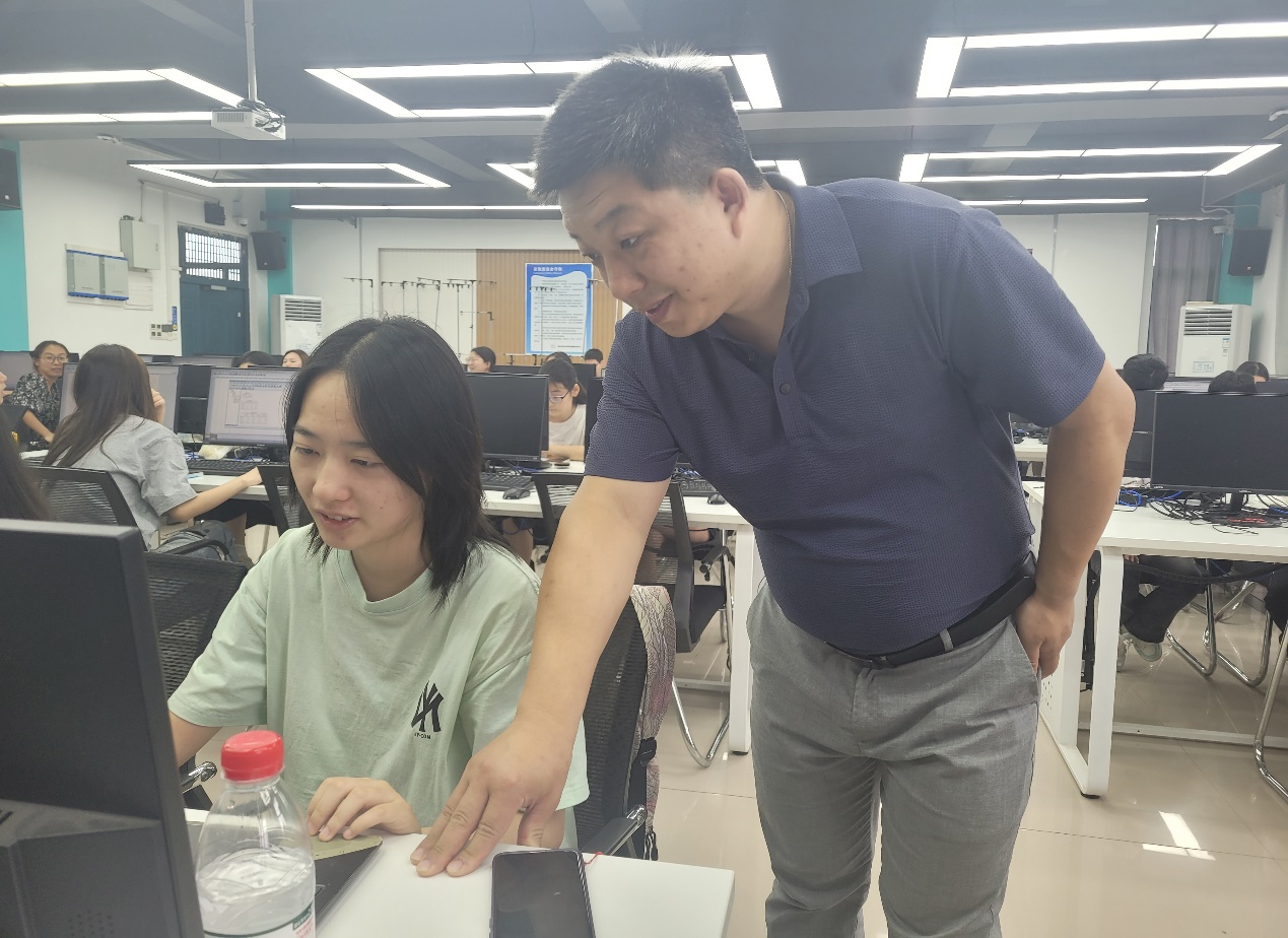 图3 人力系王烁砾老师给员工作现场辅导(6月29日)