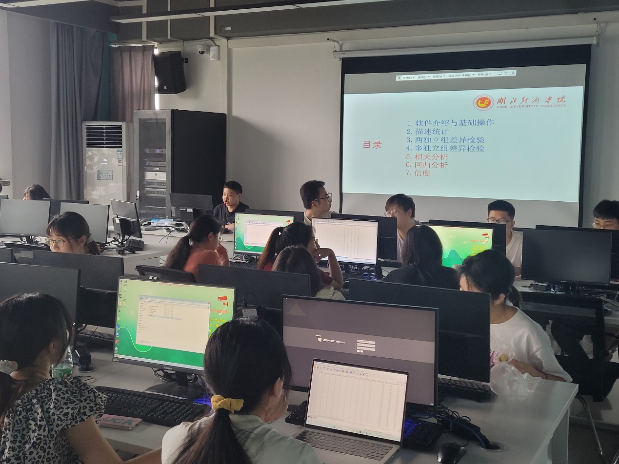 6月29日,中期实训班级集中举行了简短的开班仪式,人力系熊俊峰主任作了热情洋溢的开营致辞。他从实训目的、时间安排、实训内容、实训要求进行系统介绍。接着黄华老师对常用的人力资源管理数据统计分析软件进行功能介绍,针对问卷设计、数据录入、数据转换、描述性统计分析、独立样本t检验和单因素方差分析进行系统讲解,人力系王烁砾和程志辉老师对员工实训操作进行了现场辅导。