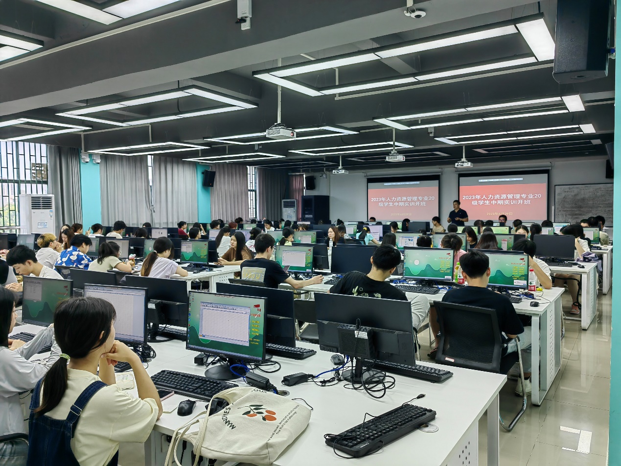 2023年6月29日,20级人力资源管理专业员工中期实训在实验1-405开班。中期实训第一个模块为人力资源管理数据统计与分析实操训练。本实训模块由人力资源系黄华老师为主讲人,熊俊峰、程志辉、王烁砾老师为员工实操指导老师,实训时间为2天, 20级人力资源管理专业82人全体参与了本模块训练。