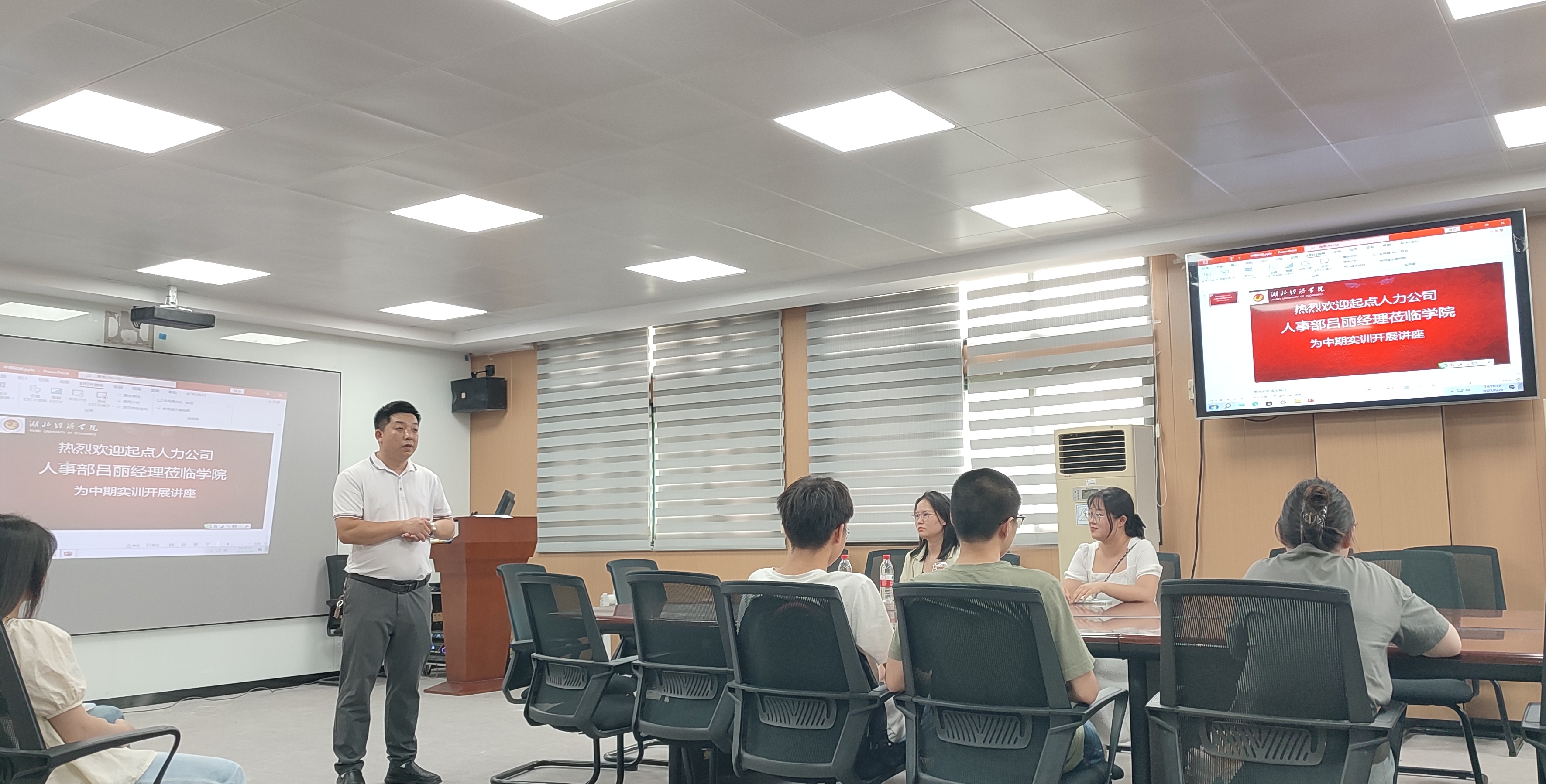 图2 武汉起点人力有限公司吕丽经理为中期实训开讲座