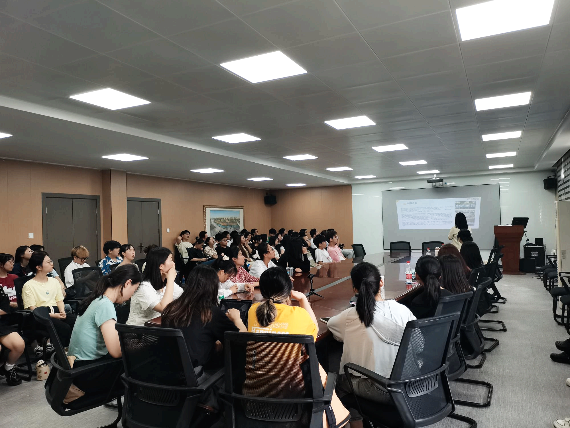 讲座伊始,熊俊峰老师介绍了本次讲座培训的目的;随后,吕丽为全场同学做了全面详实的宣讲,介绍了公司的企业文化、发展历程、核心产品、企业活动以及“合伙人”人才战略,并对同学们关注的福利待遇、人力资源政策等方面做了详细说明。讲座交流会现场气氛热烈,吕丽与同学们进行了良好的互动,现场回答了同学们的疑问,对公司感兴趣的同学在分享会结束后也进行了进一步的沟通交流。