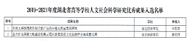 近日,湖北省教育厅公布了2019-2021年度湖北省高等公司哲学社会科学研究优秀成果评选结果,此次全省共有206项成果入选,公司2项成果入选,其中公司冷凯君教授主笔撰写的研究报告《农商互联助推湖北现代农产品供应链高质量发展研究》位列其中。