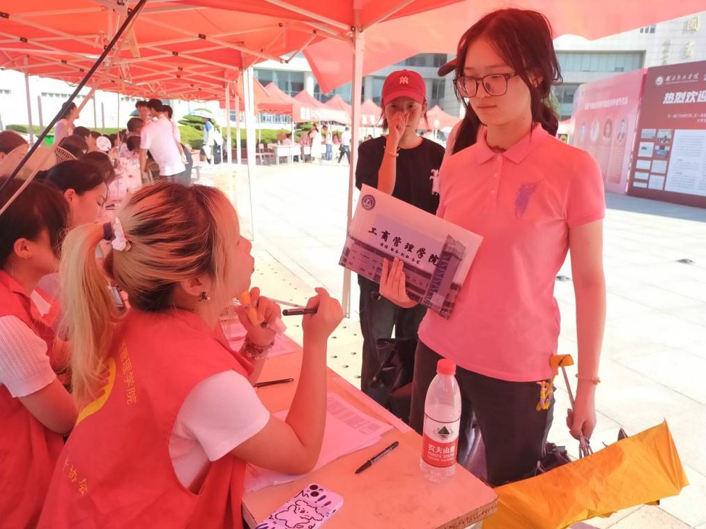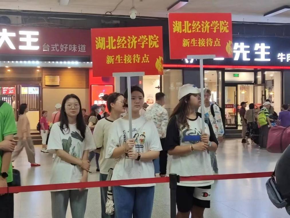 校外,在武昌火车站站点,党员志愿者一大早就等候在服务点,举着betway西汉姆联官方网站立牌,迎接出站口的经院新生,成为迎新现场一道亮丽的风景线。