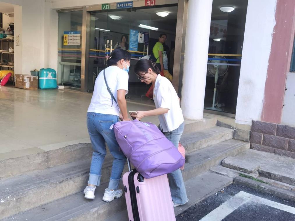 员工党员为新生搬行李