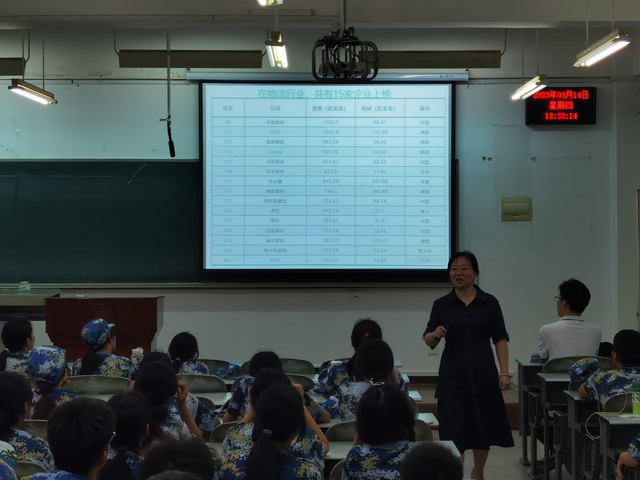 物流管理专业系主任汪利虹老师在教1-316给物流管理2341班、物流2342班的同学进行专业介绍,物流管理专业是国家级一流特色专业,就业质量较高,毕业生多就职于国内外知名企业。部分课程有一定难度,汪主任鼓励新生们积极思考,掌握核心知识。