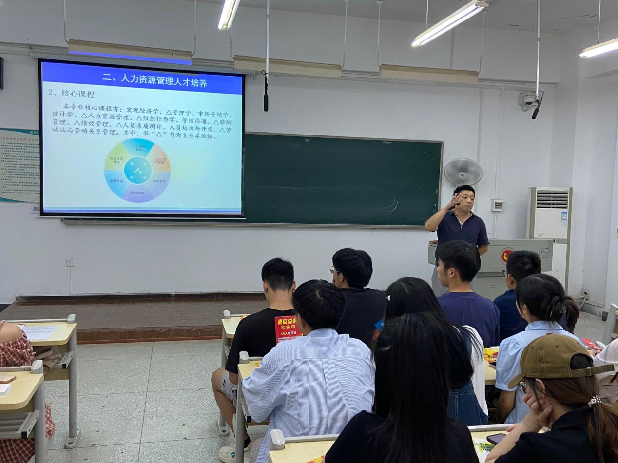 betway西汉姆联官方网站工商管理专业、人力资源管理专业、物流管理专业、供应链管理专业、工程管理专业、市场营销专业分组开展了专业教育。工商管理专业刘钢老师在教1-101给工商2341班、工商2342班同学进行专业定位和成长目标讲解、专业人才特色、团队队伍、研究成果、职业发展。刘老师通过案例引入管理的定义开展专业介绍,同学们在台下认真听专业介绍,并与刘老师积极互动。