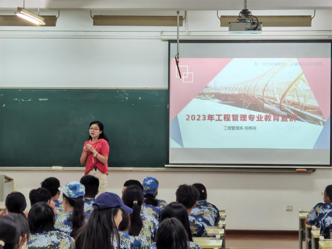 工程管理专业系倪燕翎老师在教2-218给工程管理2341班、工程管理2342班、工程管理2343班新生们进行了专业讲解,介绍了工程管理专业的团队队伍,研究成果,就业方向等,鼓励新生在大学四年不负韶华,努力奋斗。