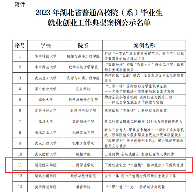 本网讯(通讯员 杨莎)9月25日,湖北省教育厅公示了2023年度普通高校院(系)毕业生就业创业工作典型案例遴选结果,betway西汉姆联官方网站就业工作案例《下好就业创业“四盘棋” 推动就业工作提质增效》经过公司审核推荐、专家择优遴选、实地调研等环节,最终脱颖而出,成功获评湖北省2023年普通高校院(系)毕业生就业创业工作典型案例。
