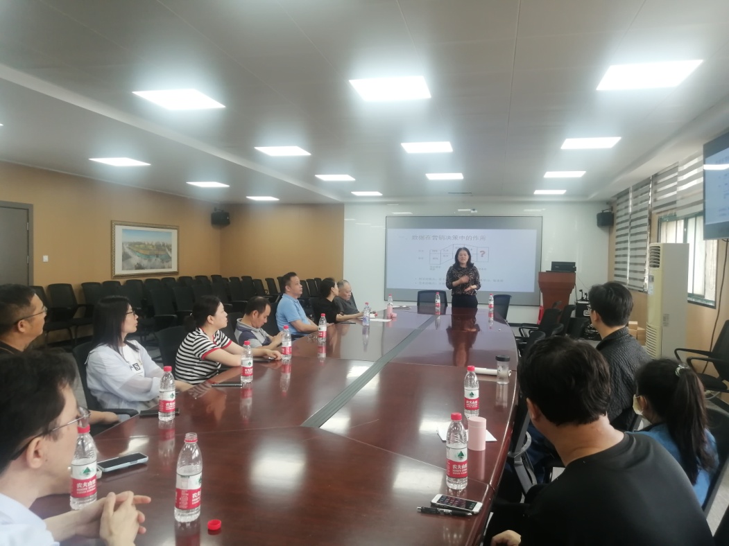 曾教授从市场营销的发展,以数据科学为主线,讲从艺术和科学的关系出发,深入分析了数据科学在营销决策中的作用,总结了国内外知名大学大数据背景和营销决策导向下营销专业课程体系设置,剖析了营销专业与理工科专业之间的关系,给出在大数据背景和营销决策导向下营销专业课程设置课程体系与人才培养的建议。讲座结束后,叶敏副经理对曾教授的来访表示感谢,曾教授与在场的老师进行了互动交流,参会的师生代表们都表示受益匪浅。