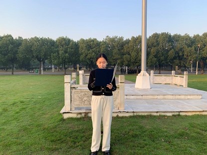 蒋玥老师在发言中从三个方面讲述了自己的心得体会。她指出爱国是一个国人最基本的道德素养,希望大家志存高远,坚定理想信念,从爱国主义精神、伟大建党精神中不断汲取前行力量,经风雨、见世面、壮筋骨、长才干,让青春之花在祖国大地上绚丽绽放。