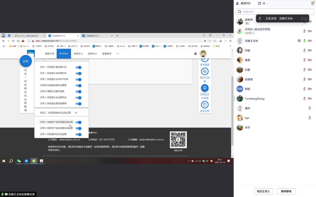 在物流管理专业知识的教与学中合理利用仿真软件,既能增强教学效果,也能提升员工的学习兴趣,巩固知识技能,拓宽专业视野。为进一步提高公司国家级一流物流管理专业的办学水平,进一步提升专业课程配套实验实践软件层次,真正让员工在做中学、练中学,以赛促学,我系邀请上海百蝶教育科技有限公司王玉林经理介绍相关软件。