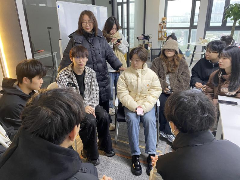 武汉素然文化传媒有限公司梁政编导以小组互动的形式讲讲短视频编剧与导演技巧,让同学体会到高质量短视频账号的核心要点,一定要注意2个:视听语言、视觉冲击感及短视频账号策划的核心逻辑。最后,公司与武汉素然文化传媒有限公司校企双方合影,共同推进校企合作、培养更多数字媒体营销人才努力。