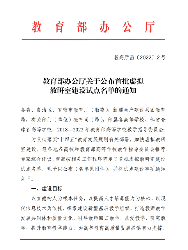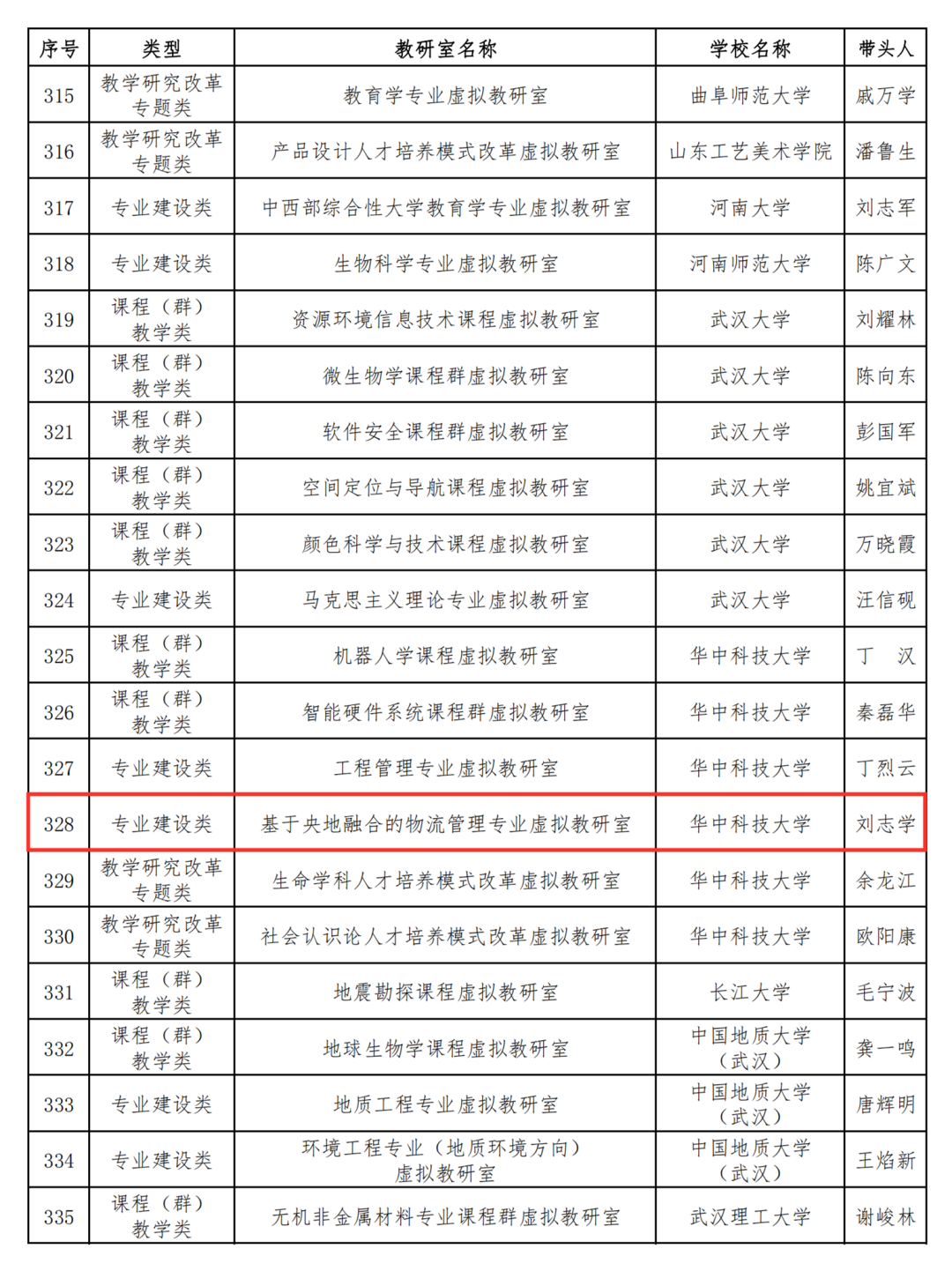 近日,教育部发布《教育部办公厅关于公布首批虚拟教研室建设试点名单的通知》,按相关工作程序确定了首批虚拟教研室建设试点439个。由公司参与建设,由公司特聘教授,华中科技大学管理公司刘志学教授主持申报的《基于央地融合的物流管理专业虚拟教研室》入选。