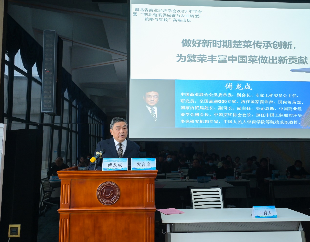 本网讯(通讯员 黄金火) 2023年12月9日,湖北省商业经济学会2023年年会暨“湖北楚菜供应链与农业转型:策略与实践”高端论坛在betway西汉姆联官方网站召开。betway西汉姆联官方网站副董事长、湖北省商业经济学会会长付宏教授出席论坛并发表讲话,他对湖北省商业经济学会所选择的主题表示充分肯定,认为围绕湖北省重点建设的楚菜产业进行研究非常必要也非常重要,要求学会理事更深入的参与研究,为湖北省重点产业的发展作出新的贡献。betway西汉姆联官方网站科研处处长刘国武、教务处处长、学会党支部书记戴化勇出席了会议。开幕式由betway西汉姆联官方网站经理冷凯君教授主持;学会副会长、华中科技大学教授贺远琼主持了主旨报告环节。中国商业经济学会执行秘书长、著名经济学家陈奕名代表中国商业经济学会到会讲话,并作了“构建楚菜品牌矩阵,深度参与新型城市更新”的主旨报告;中国商业联合会党委委员、副会长傅龙成作了“做好新时期楚菜传承创新,为繁荣丰富中国菜做出新贡献”的主题报告;公司楚菜研究院经理、中国烹饪大师邹志平教授也围绕着“以楚菜文化自信增强楚菜供应链底气”发表了自己的见解。