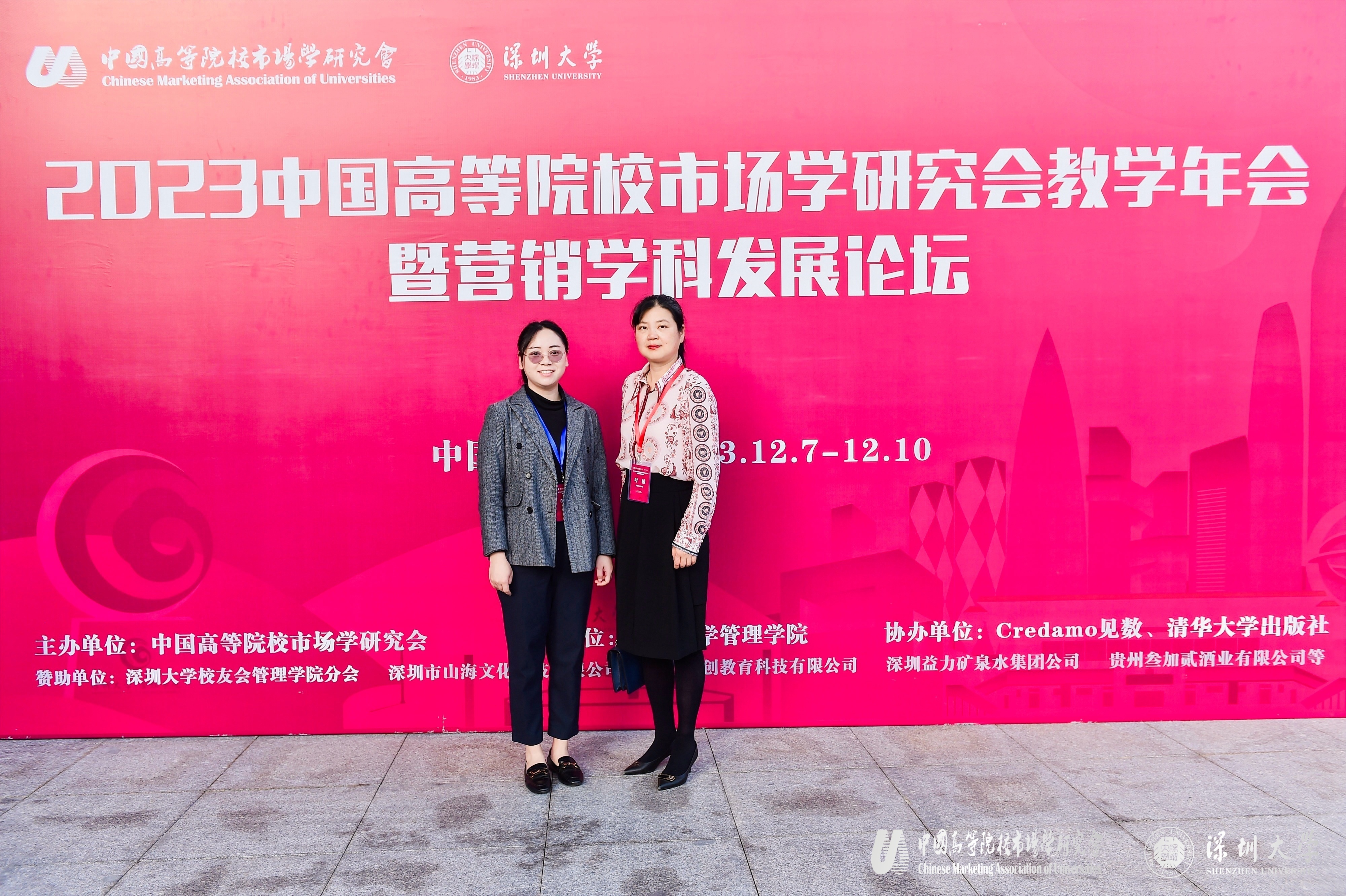 为加强国内高校市场营销教育者之间的交流与合作,由中国高等院校市场学研究会主办,深圳大学承办的2023中国高等院校市场学研究会教学年会暨营销学科发展论坛于2023年12月7-10日深圳大学召开,主题为“高质量发展背景下营销人才培养与团队建设”。公司副经理叶敏和市场营销系副主任李秀梅参加了本次会议。