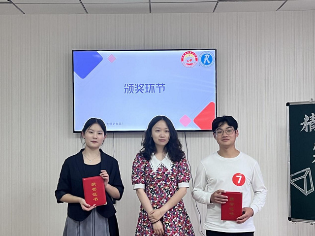 结合选手提交的人物生涯访谈报告、现场展示和回答评委提问等表现,评委老师们进行综合打分。梅小康、江天获得本次职业生涯人物访谈大赛一等奖,黄筠舒、袁玉立、张灿获得本次大赛二等奖,贺梦妮、吴恒毅、龙玥靓获得三等奖,老师蒋玥分别为八位获奖选手颁奖。
