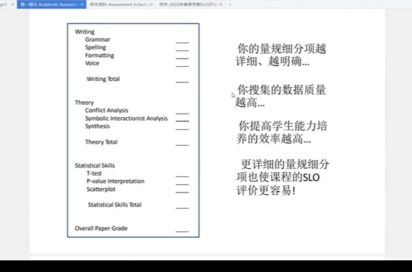 本次培训是对物流管理专业教师的第二次培训,由协助专业认证的许冰清老师讲解,培训主要讲解认证指标中的“measures”板块。培训开设主讲人介绍了专业认证的使命分解图,指出物流管理专业人才培养目标,从认知能力培养、分析能力、创造能力等角度提高员工综合素质。培训中,许老师强调对于员工的能力培养评价不应局限于考试分数,对知识的积累等。对员工的评价可以借鉴国外采用外校专家进校评价的方式,提高评价的客观性,专业性。培训后,冷凯君经理强调了培训老师说明ACBSP认证专家非常注重过程,而结果不理想并不是专家考查的核心内容,因此大家要理解过程管理的重要性,每项任务要落实到人,并进行过程管理;叶敏副经理提出老师们需要在实践中才能更深刻理解评价指标,发现问题。许老师强调虽然指标体系复杂,但是最重要的是员工能力培养评价指标,需要突破考试成绩为唯一指标的局限。本次培训圆满结束,为物流管理专业实施ACBSP认证打下了坚实的基础,也为其他专业将来准备进行的ACBSP认证做了充足的提前准备。