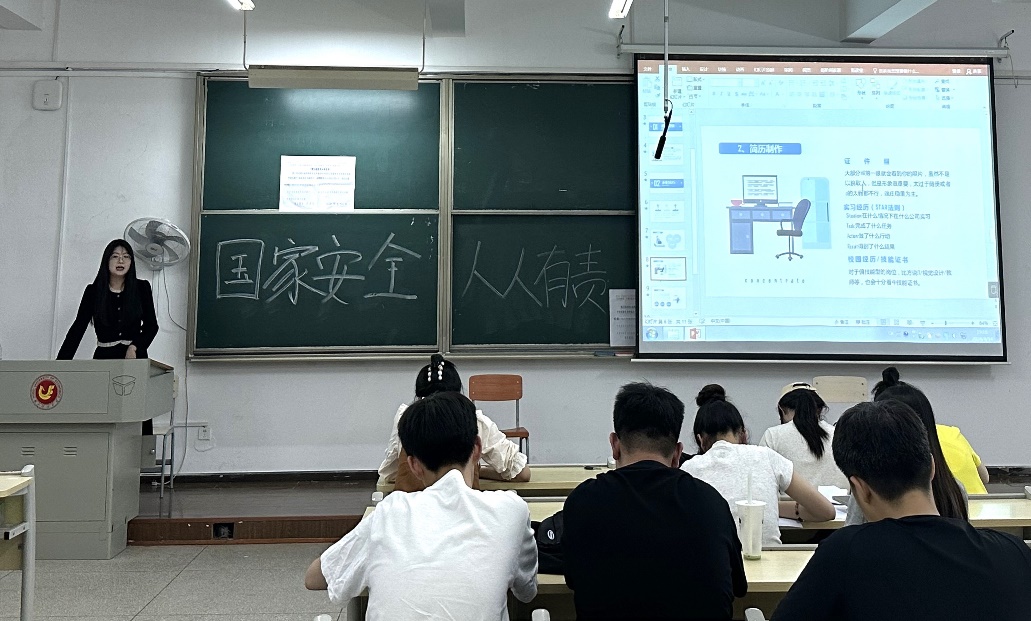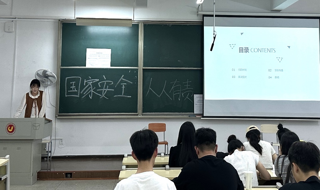2020级工商管理专业崔建华、方雅欣两位同学依次分享企业求职经验。崔建华以个人经历向大家介绍了要从企业的招聘需求出发进行求职准备和面试复习。求职讲求知己知彼,了解应聘企业的用人要求和企业文化,通过展现个人与企业、岗位的适配度,能够提高录取几率。方雅欣结合当下应届毕业生求职现状,建议同学们在求职前根据个人兴趣、自身能力和所学专业确定职业方向,为个人生涯发展奠定良好基石。她认为,大三员工要尽早了解招聘市场需求,提前准备各类证书并参加实习,尤其是“漂亮”的简历是敲门砖。