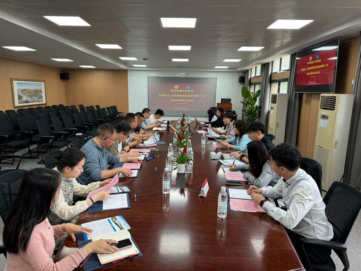 本网讯(通讯员 颜宸 审核人 刘帷)4月19日,在群贤楼412会议室,公司与小米集团交流座谈会顺利举行,双方就小米集团“新零售”校招生人才培养计划以及校企合作内容进行了深入交流探讨。座谈会由经理冷凯君主持,副书记兼副经理刘帷、副经理陈金波、小米集团中国区人力资源高级总监吴莉娜、小米集团全球校园招聘负责人刘飞霞以及双方相关负责人出席本次座谈会。