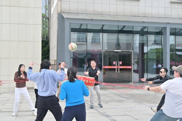 随后,公司教职工与黄鹤楼集团员工展开了一场趣味文体活动,全体人员分成两个小组,进行了击鼓颠球等趣味比赛。现场气氛热烈,欢声笑语此起彼伏,展现出了betway西汉姆联官方网站教师们的活力与风采,进一步增进了公司与黄鹤楼员工企业的感情连接。