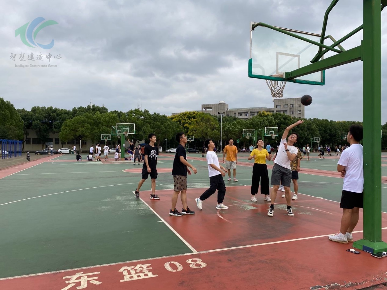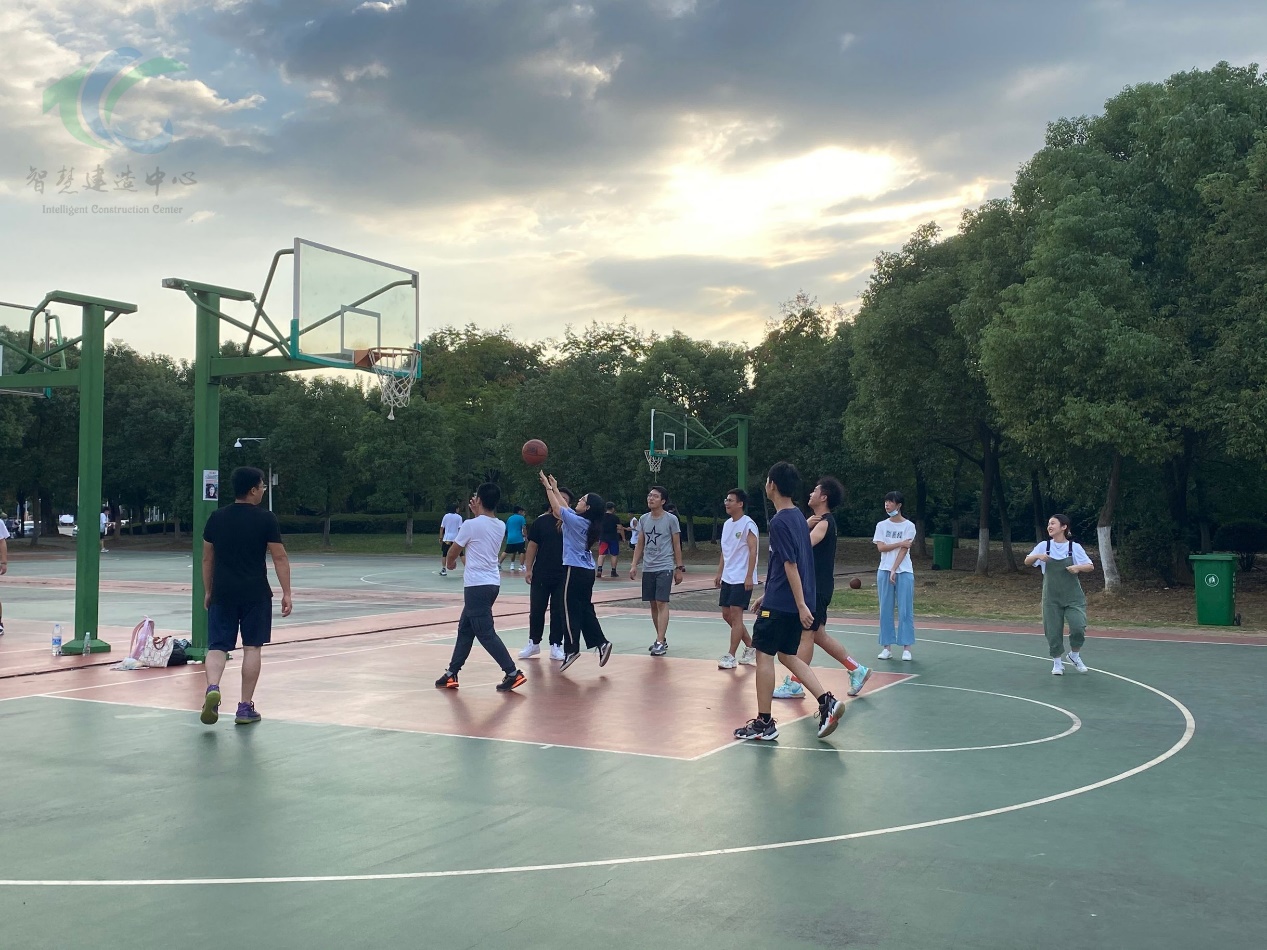 日,智慧建造中心的伙伴们在夕阳的照耀下,在篮球场上挥洒汗水。